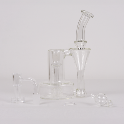 A balanced combination of portability and performance. The Full Kit #2 is designed for those who seek a more versatile setup while maintaining precision and quality. It includes a medium-sized rig, an advanced slurper for efficient vaporization, a terp pillar, and a carb cap to refine airflow and control.